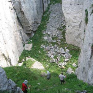 After a simple track, the route takes us into a very special labyrinthine landscape modeled on limestone and mixed with areas of native forest and some scattered livestock hut still in use.