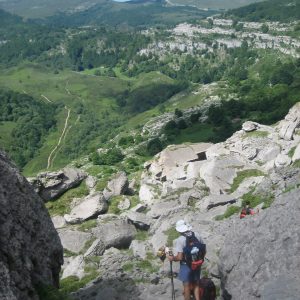 We start from the Alto del Asón, an emblematic point where we can see the source of the river that gives its name to the valley, and that in the form of a great waterfall gives us a spectacular image.